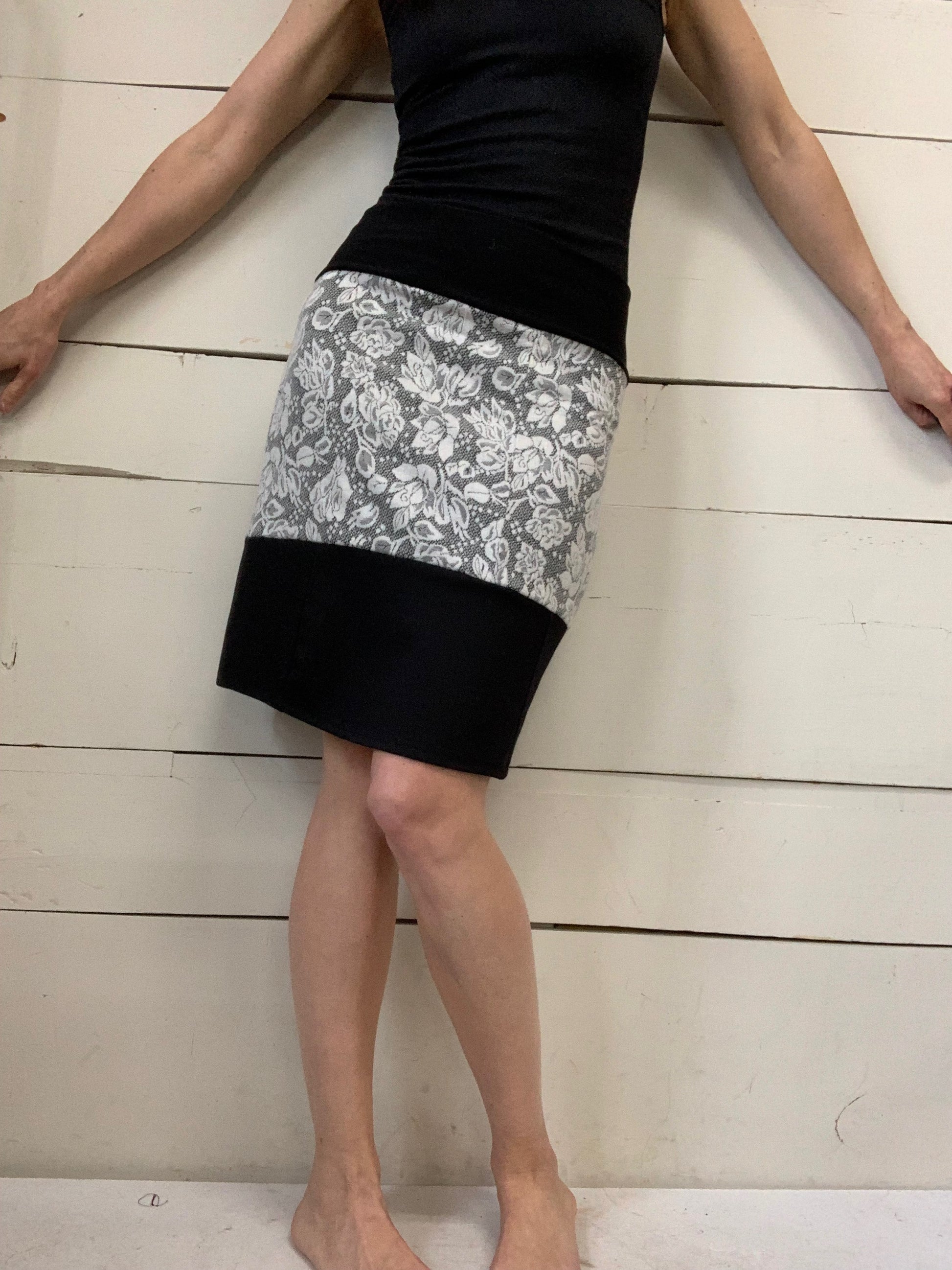 BLACK BEIGE SKIRT WITH DOTS (M-L)