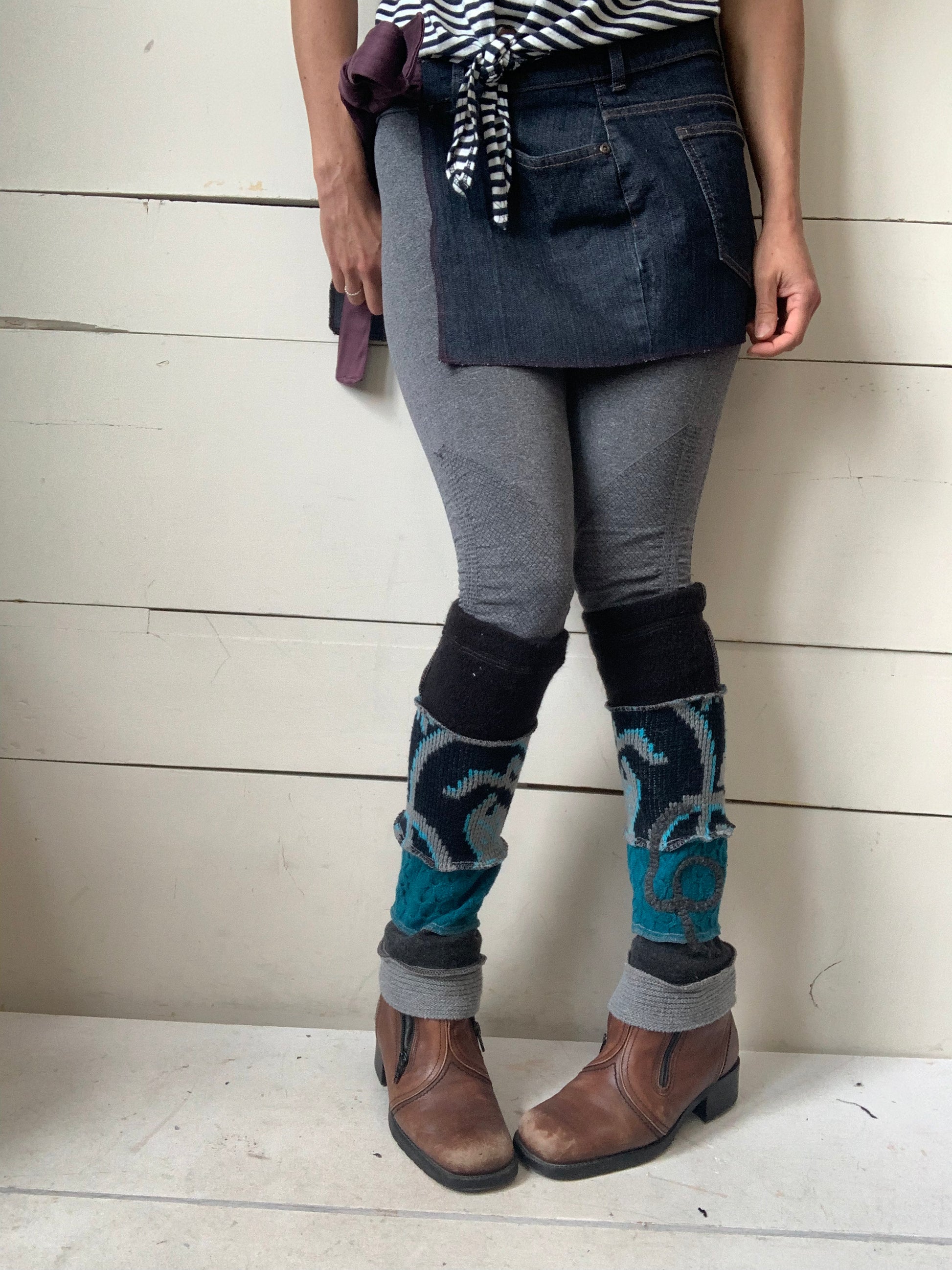 Jambières courte qui couvrent de la cheville au dessous du genou pour un adulte et qui couvrent de la cheville à la mi-cuisse pour un enfant de 9 ans.