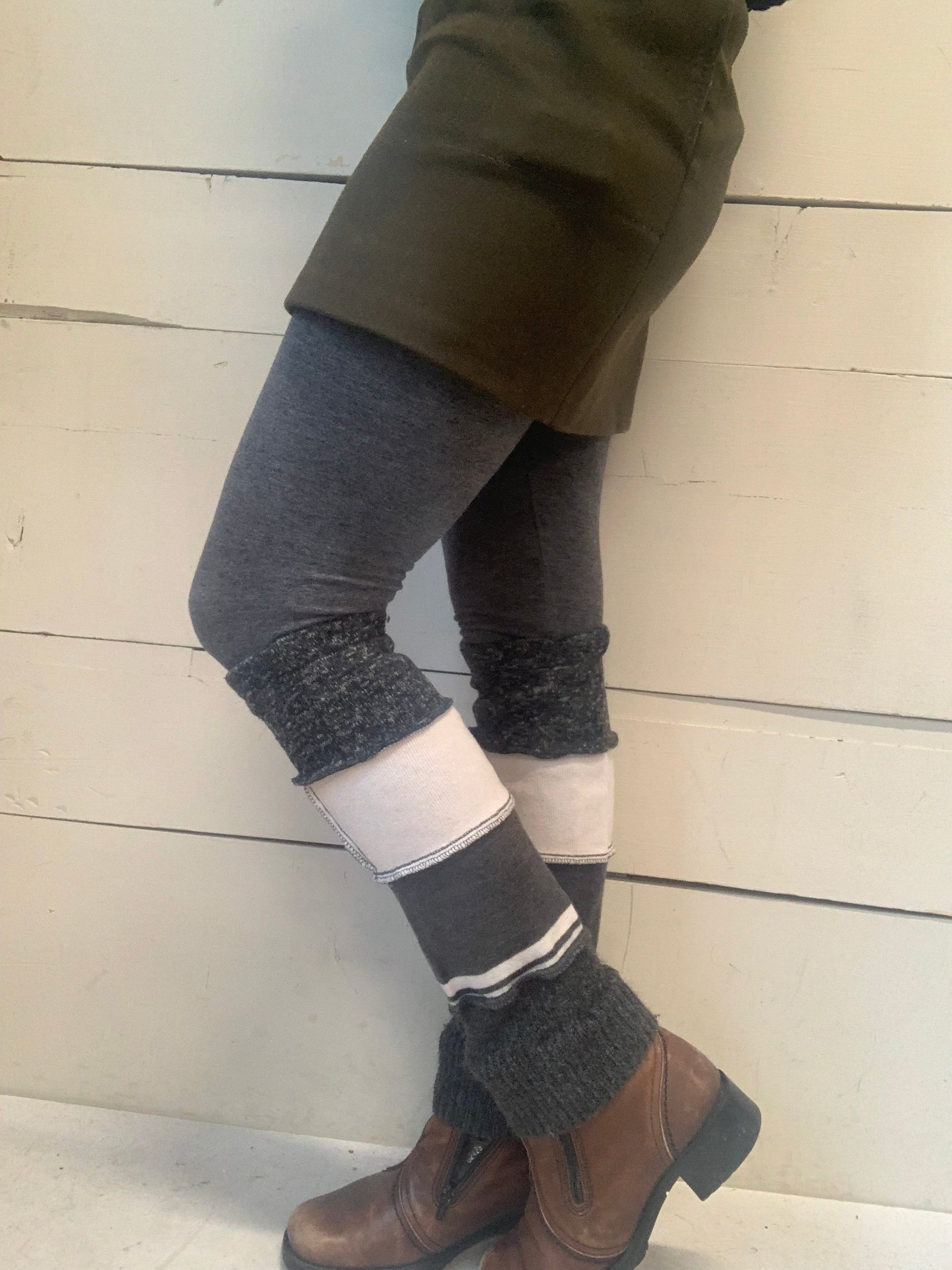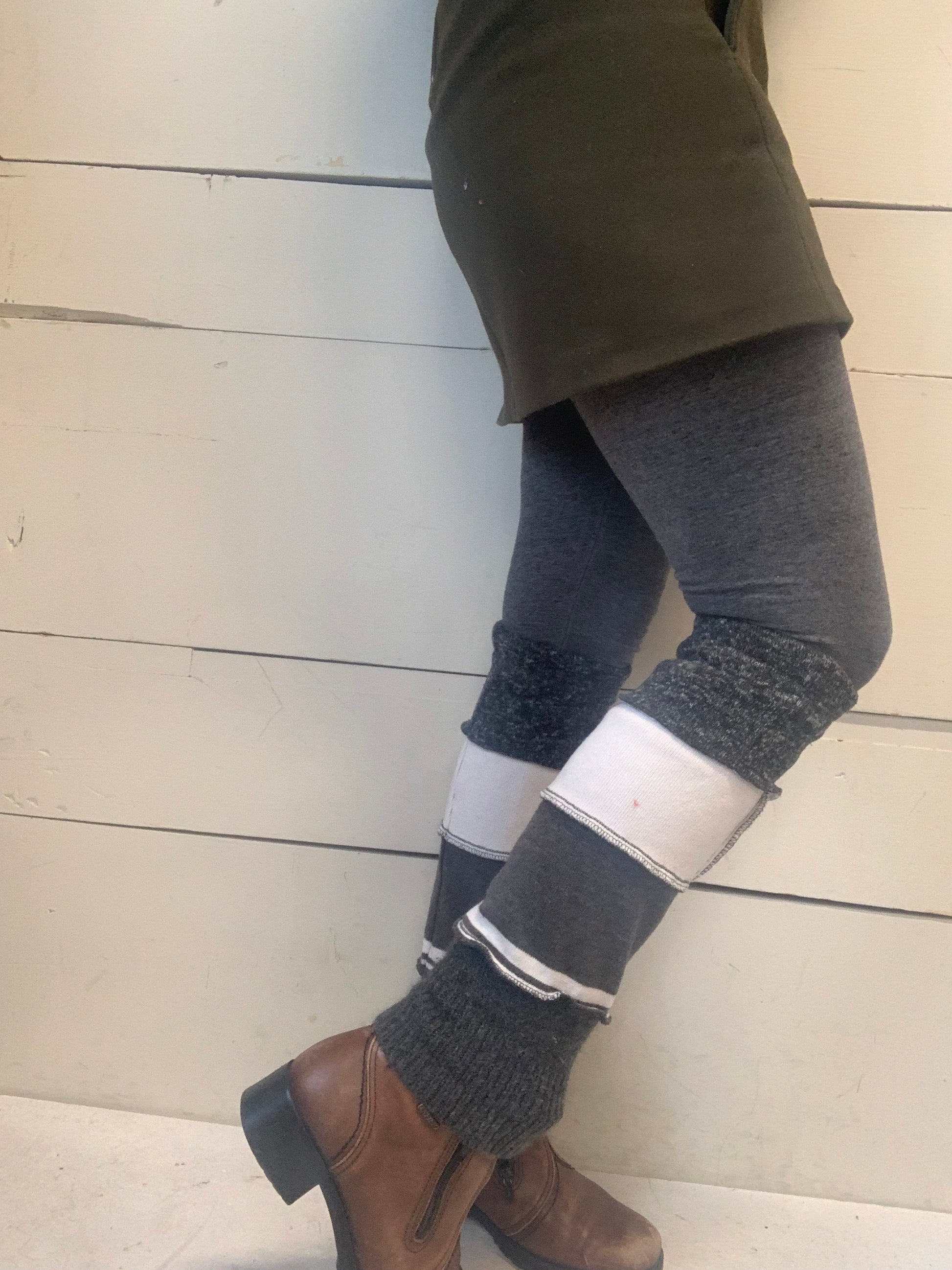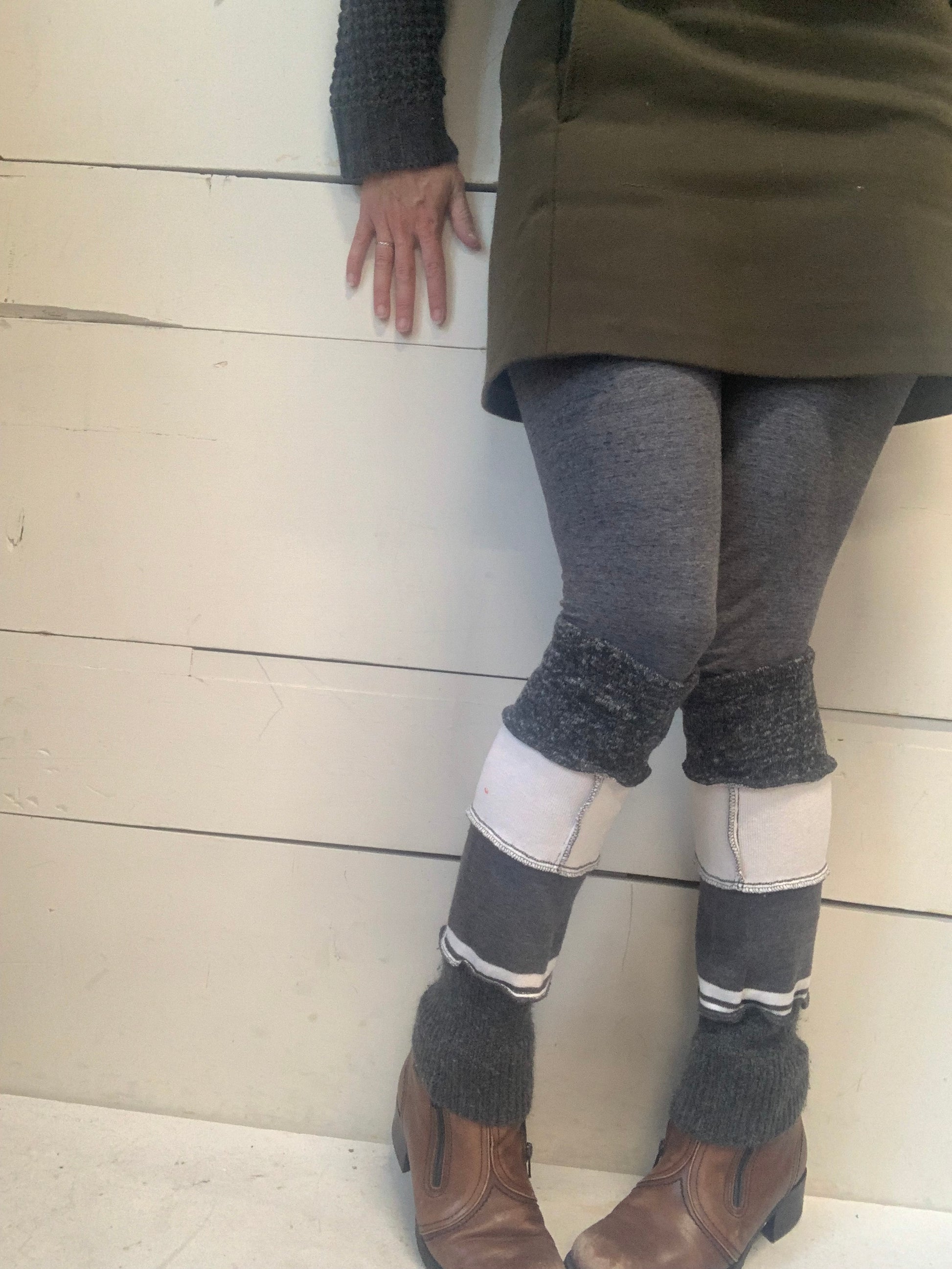 Jambières courte qui couvrent de la cheville au dessous du genou pour un adulte et qui couvrent de la cheville à la mi-cuisse pour un enfant de 9 ans.
