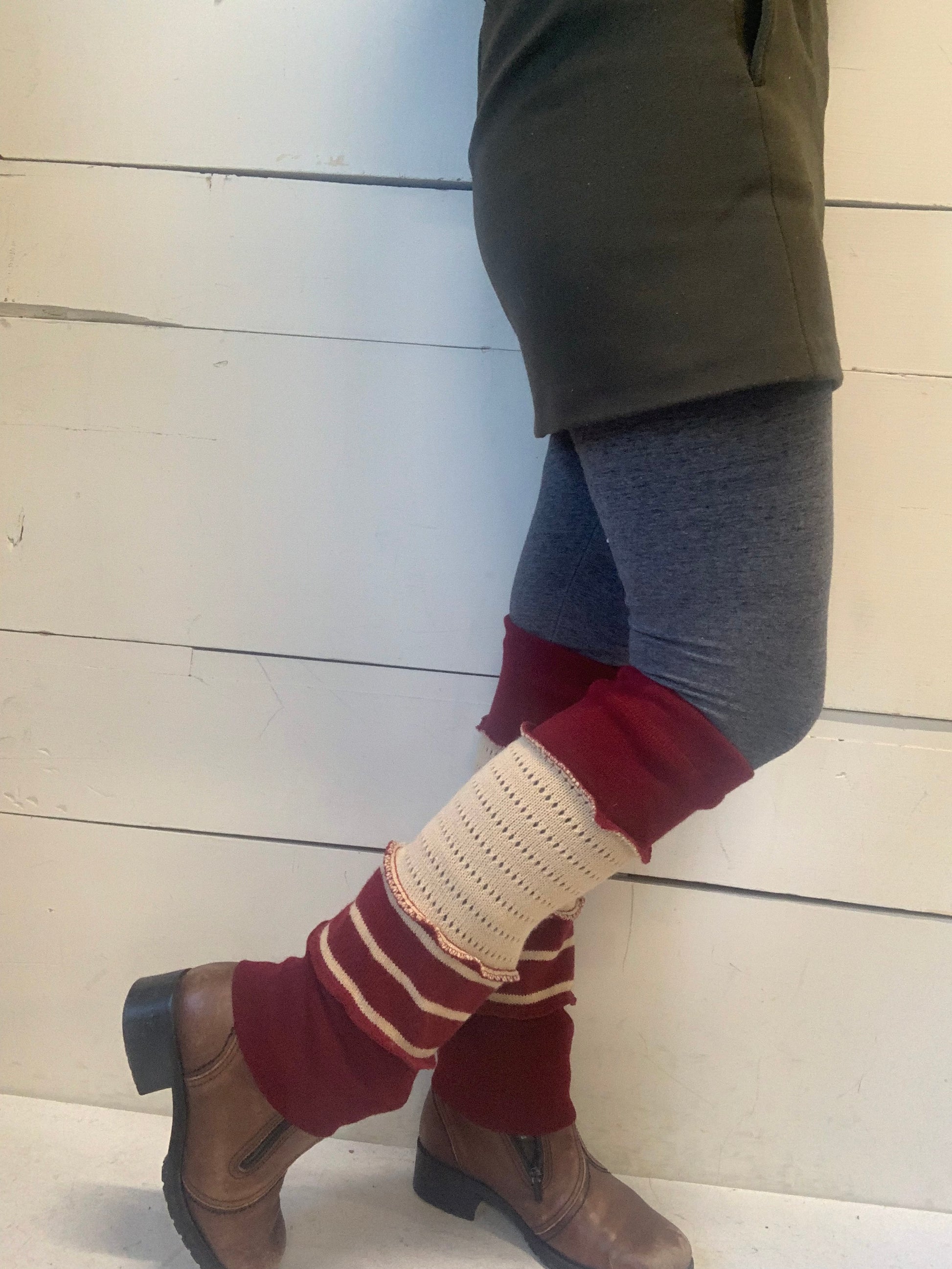 Jambières courte qui couvrent de la cheville au dessous du genou pour un adulte et qui couvrent de la cheville à la mi-cuisse pour un enfant de 9 ans.