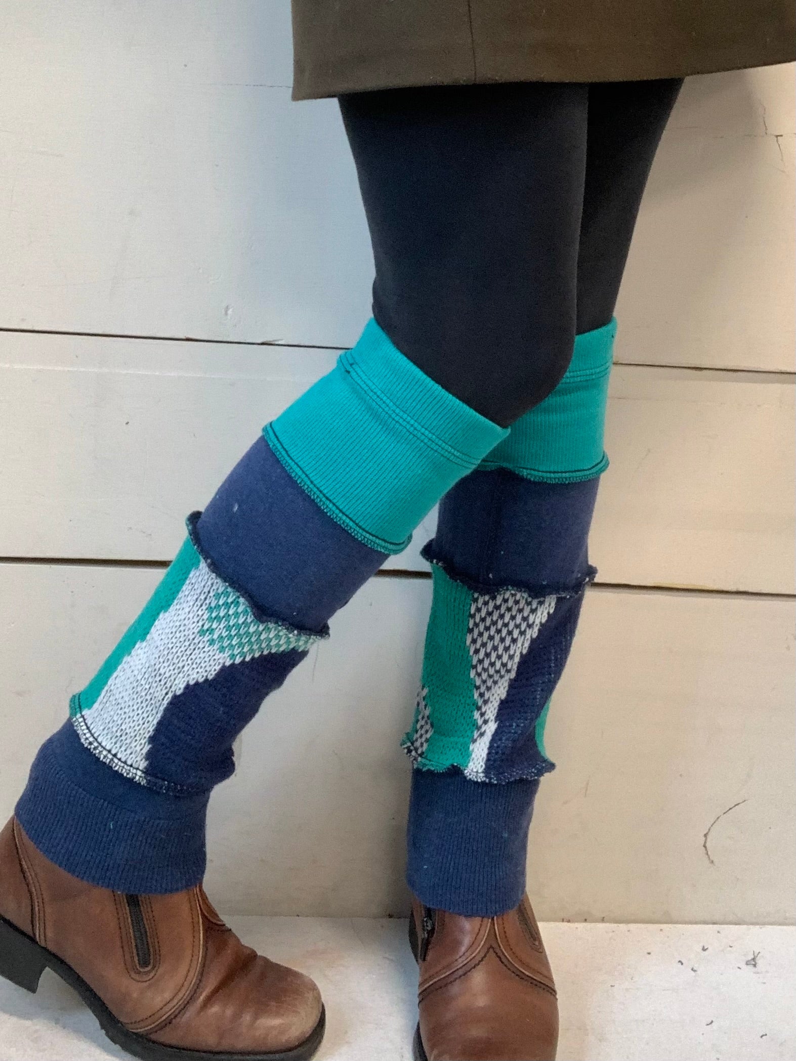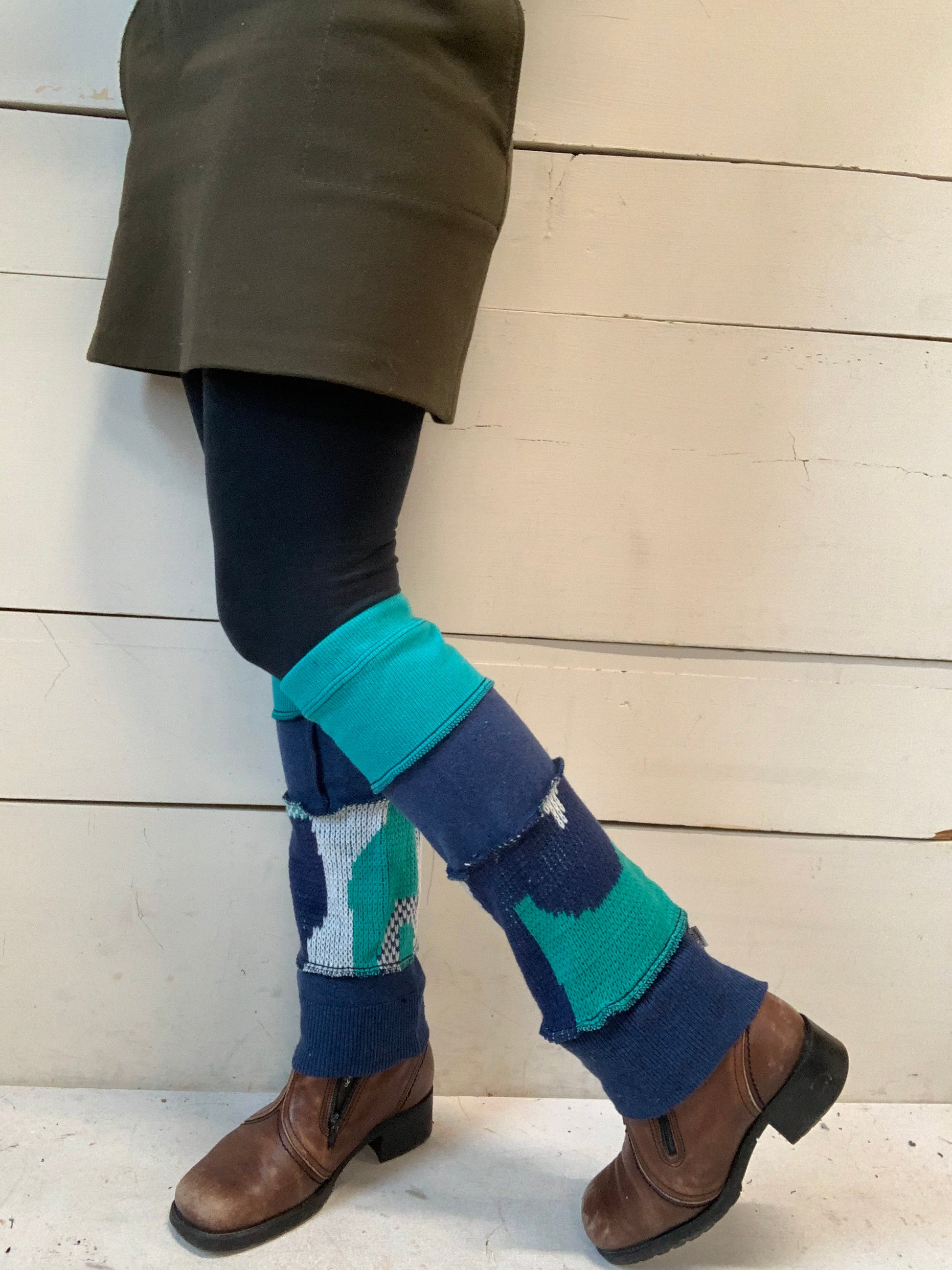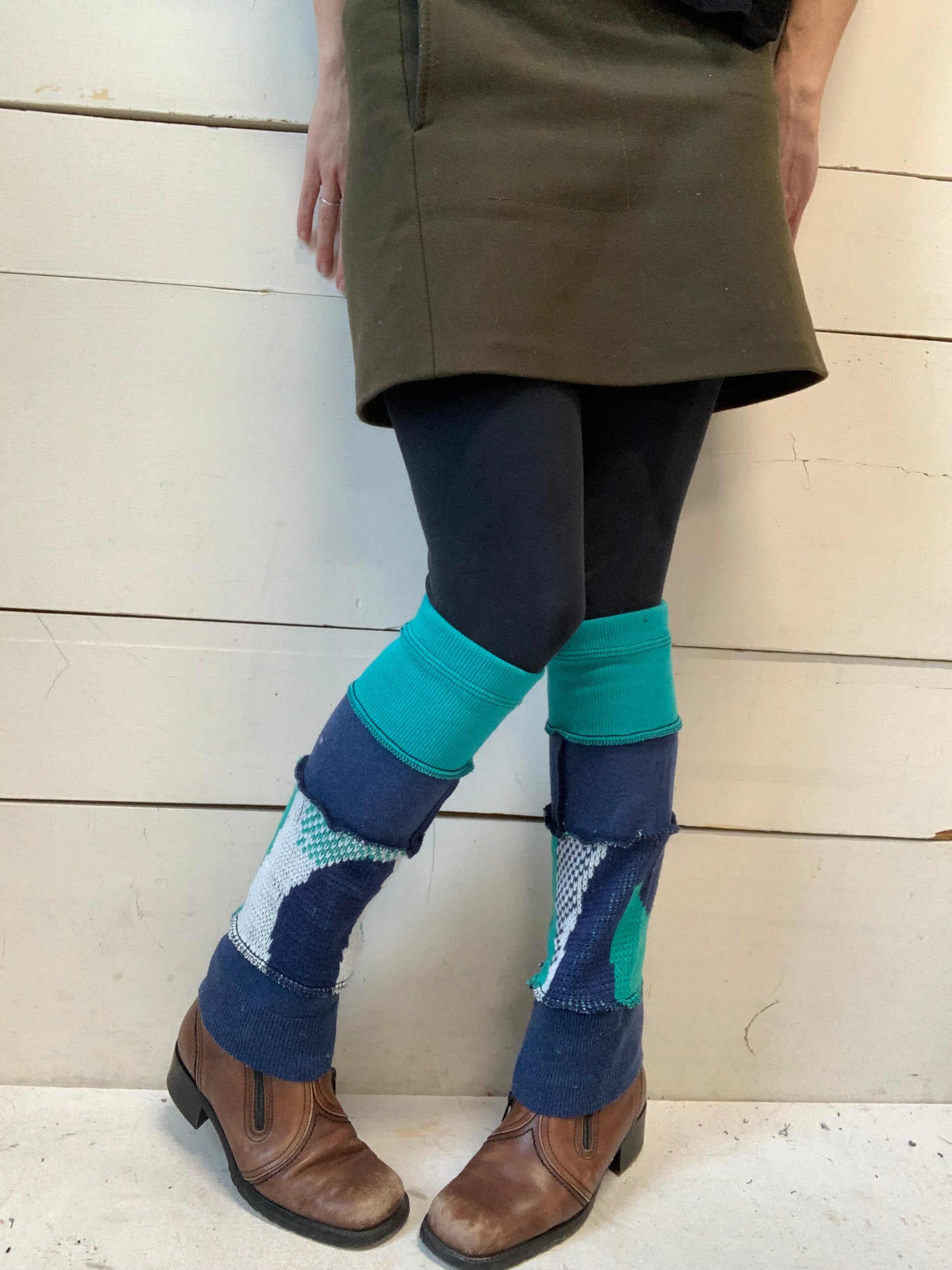 Jambières courte qui couvrent de la cheville au dessous du genou pour un adulte et qui couvrent de la cheville à la mi-cuisse pour un enfant de 9 ans.