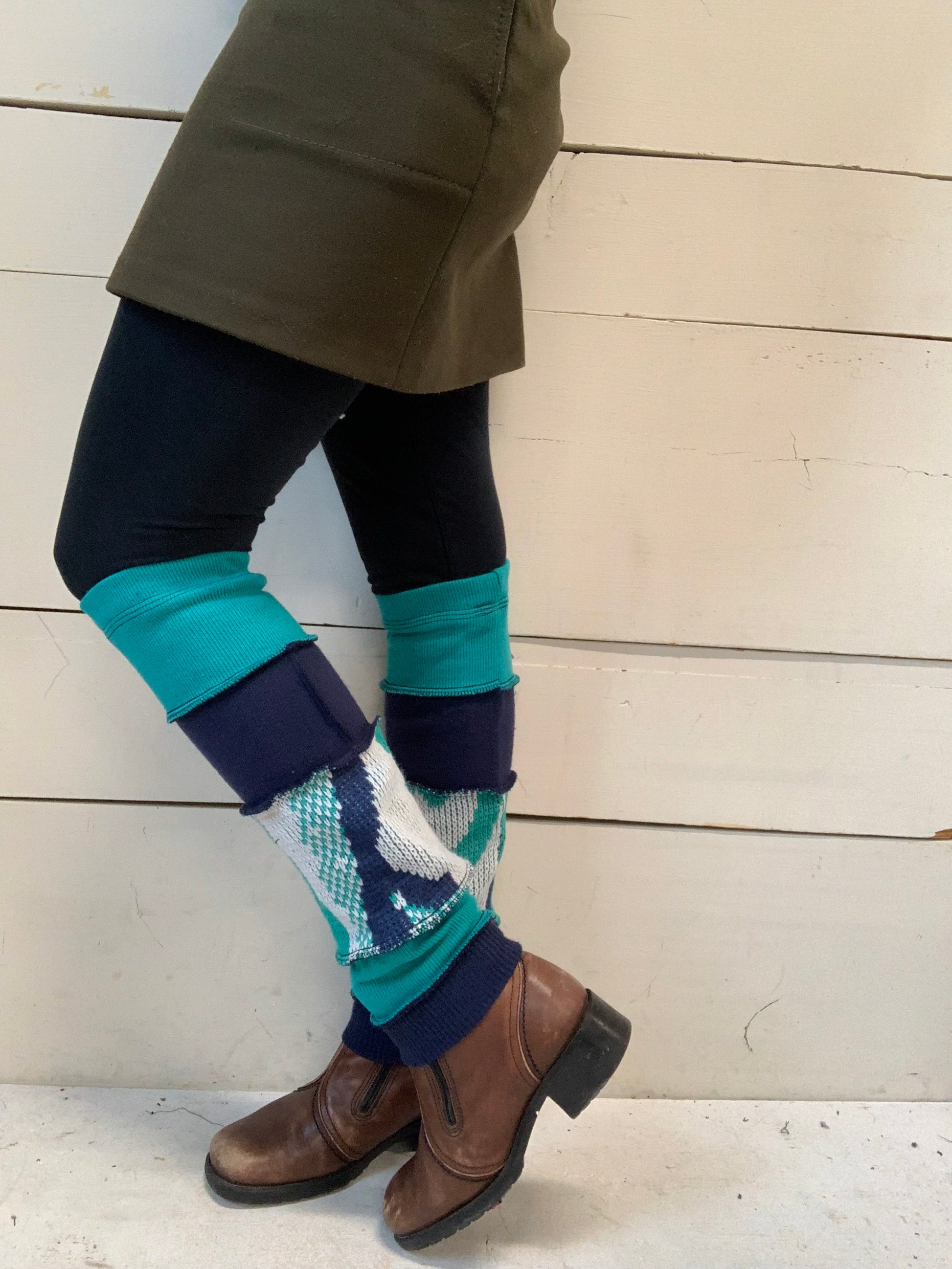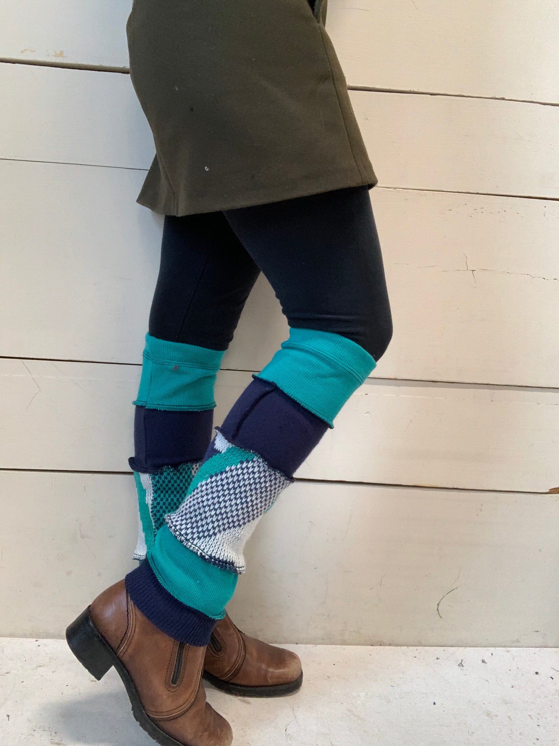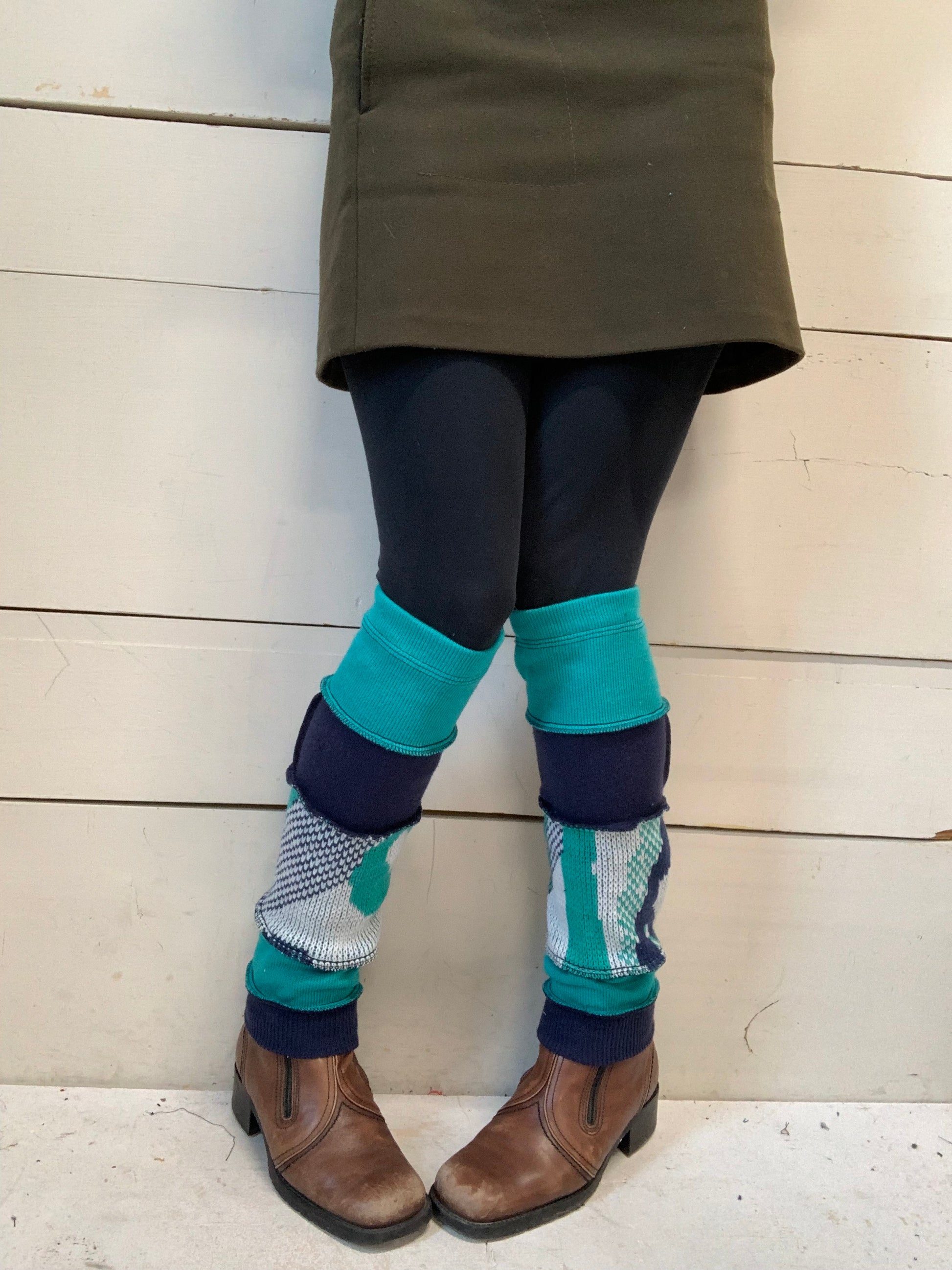 Jambières courte qui couvrent de la cheville au dessous du genou pour un adulte et qui couvrent de la cheville à la mi-cuisse pour un enfant de 9 ans.