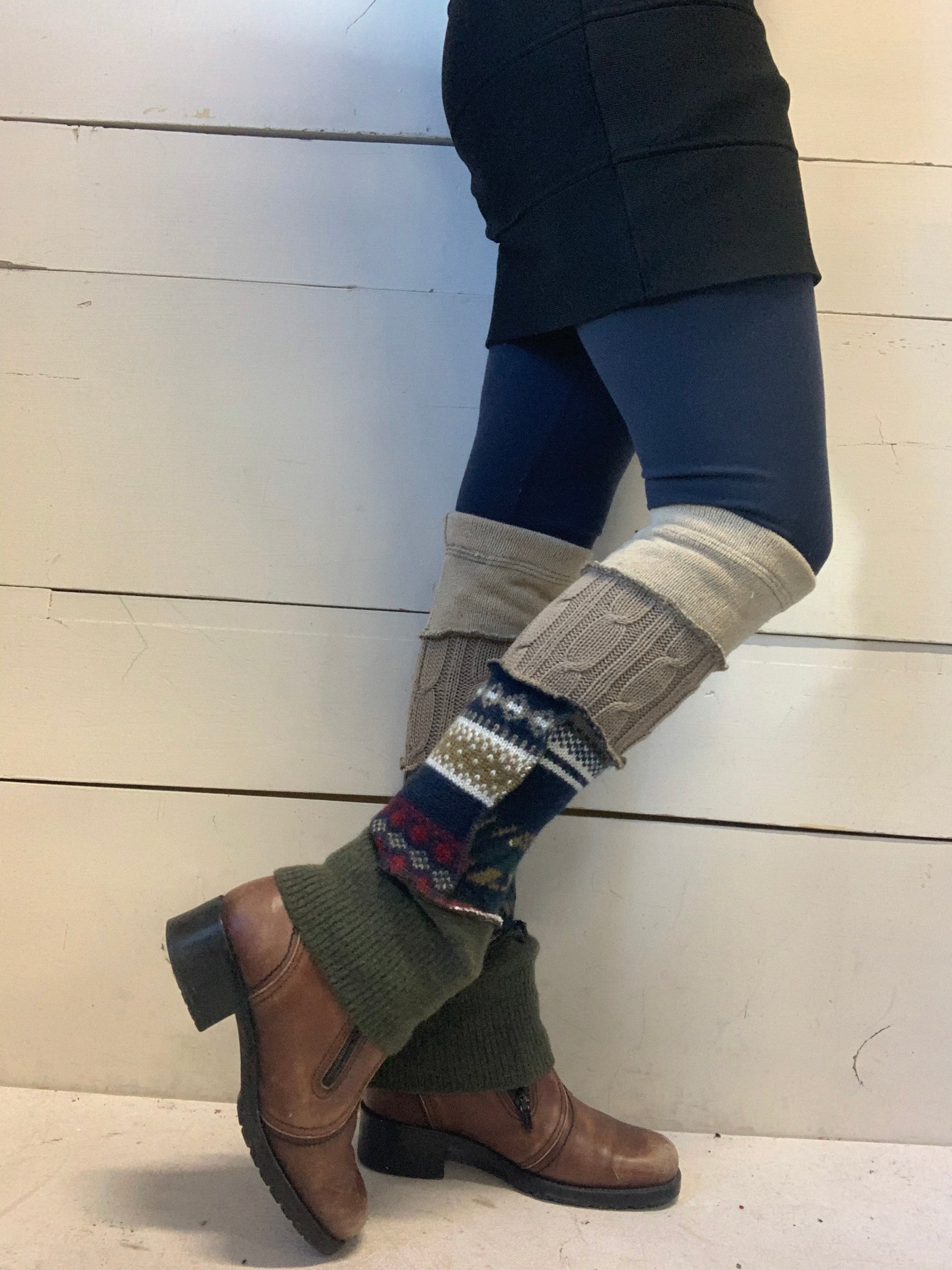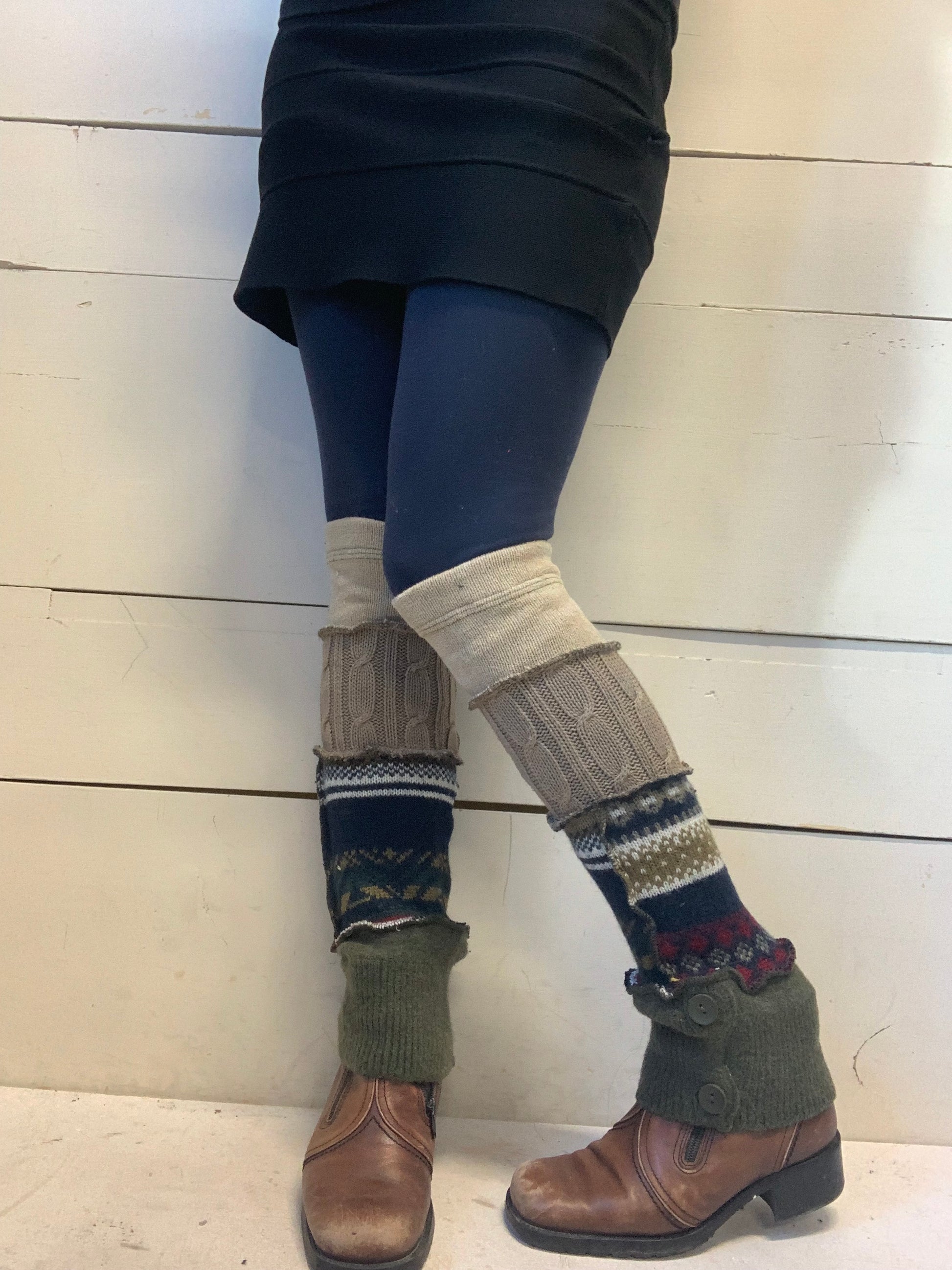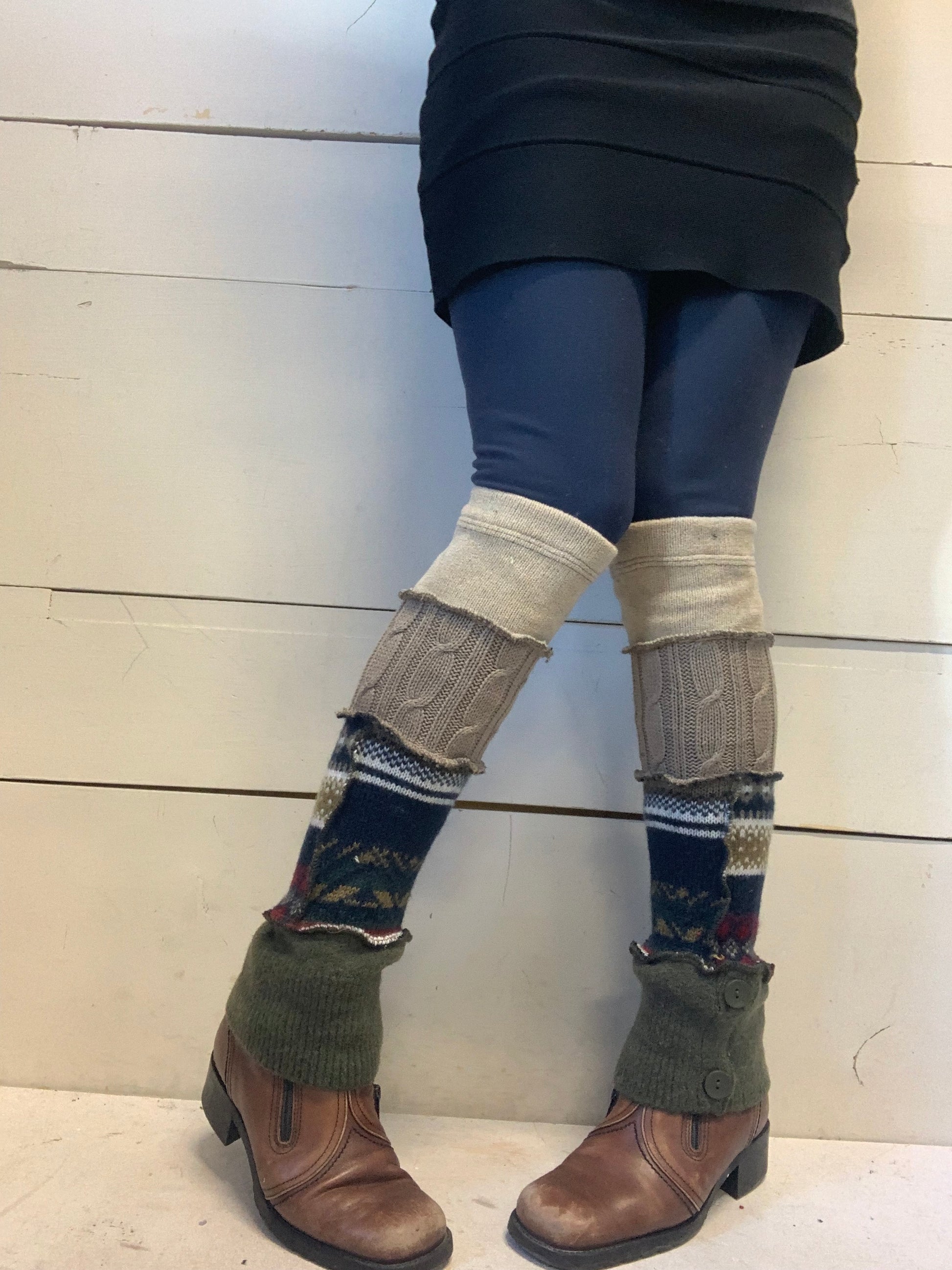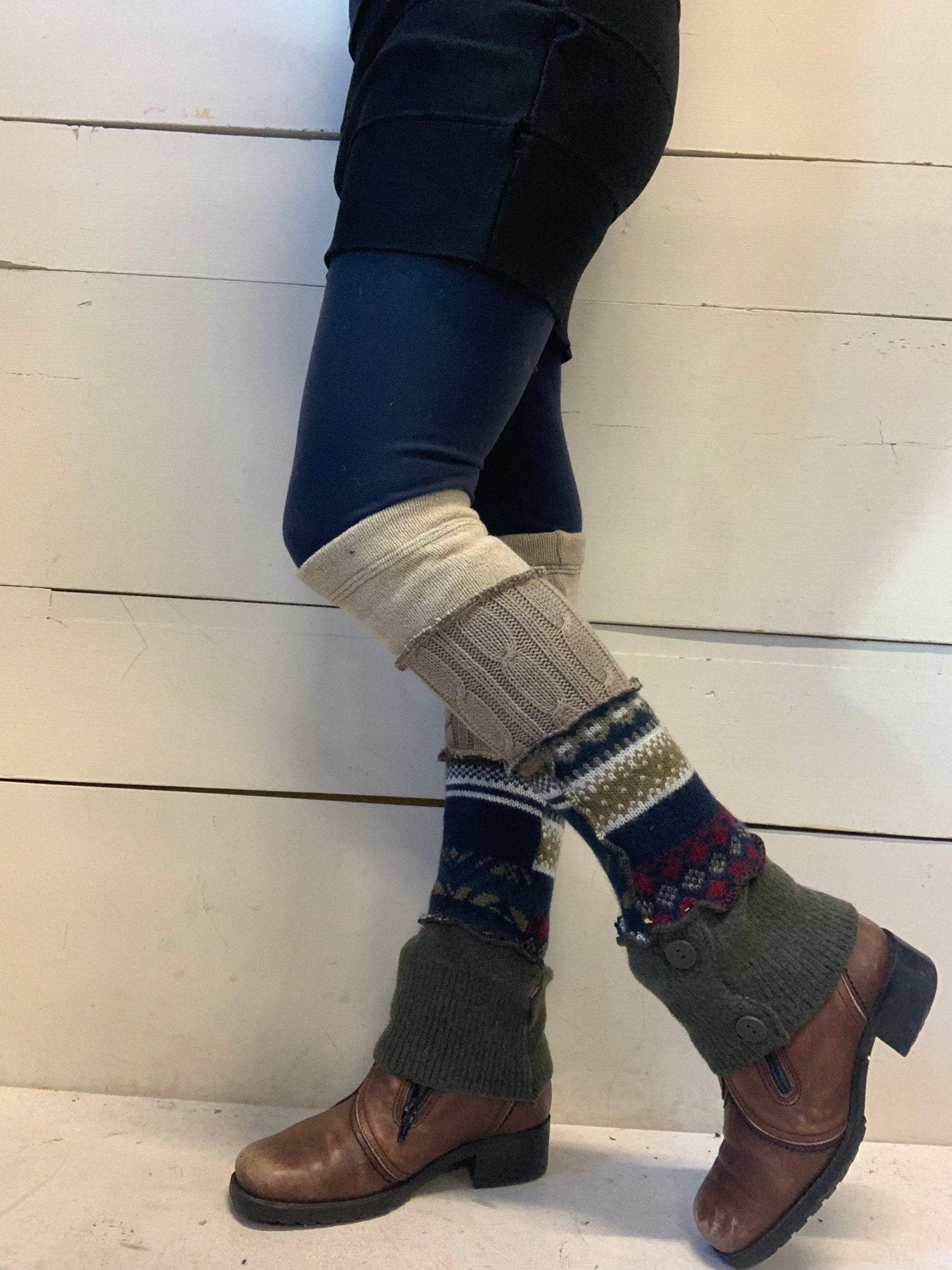 Jambières courte qui couvrent de la cheville au dessous du genou pour un adulte et qui couvrent de la cheville à la mi-cuisse pour un enfant de 9 ans.