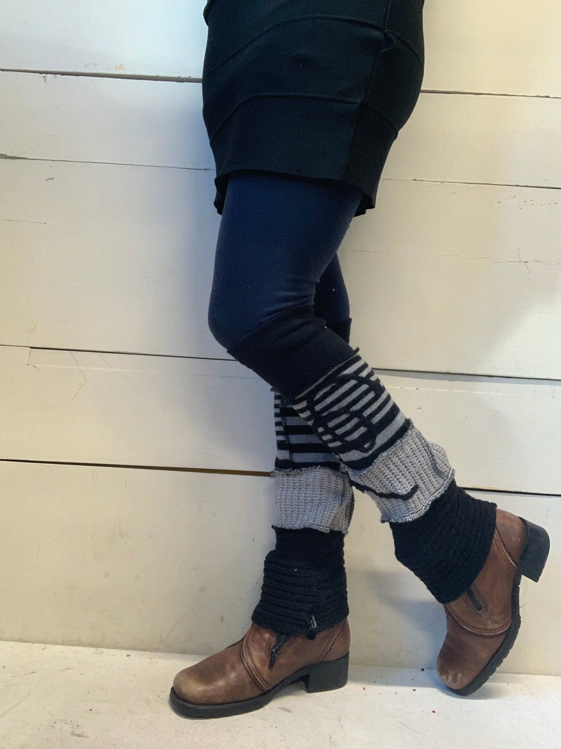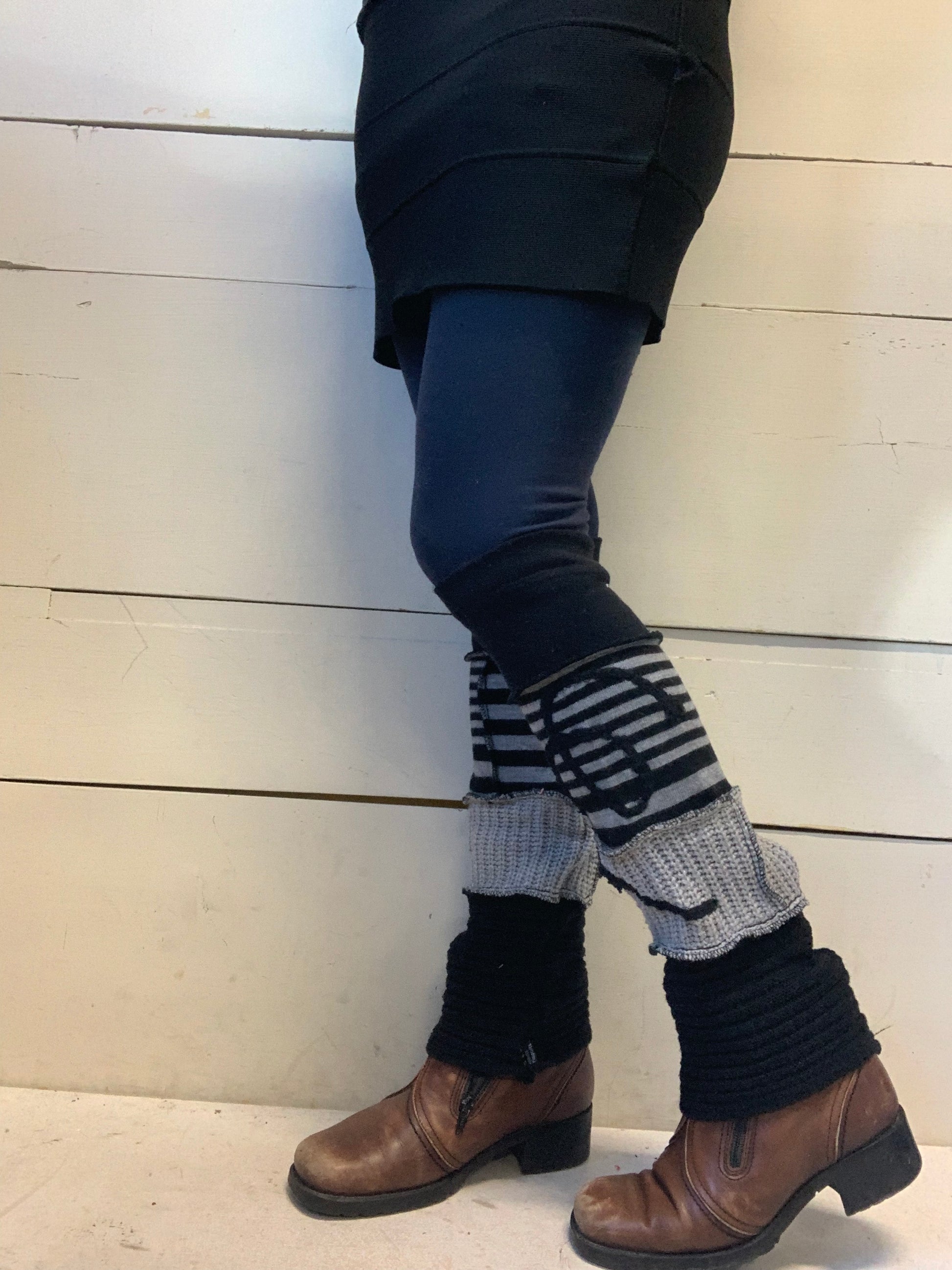 Jambières courte qui couvrent de la cheville au dessous du genou pour un adulte et qui couvrent de la cheville à la mi-cuisse pour un enfant de 9 ans.