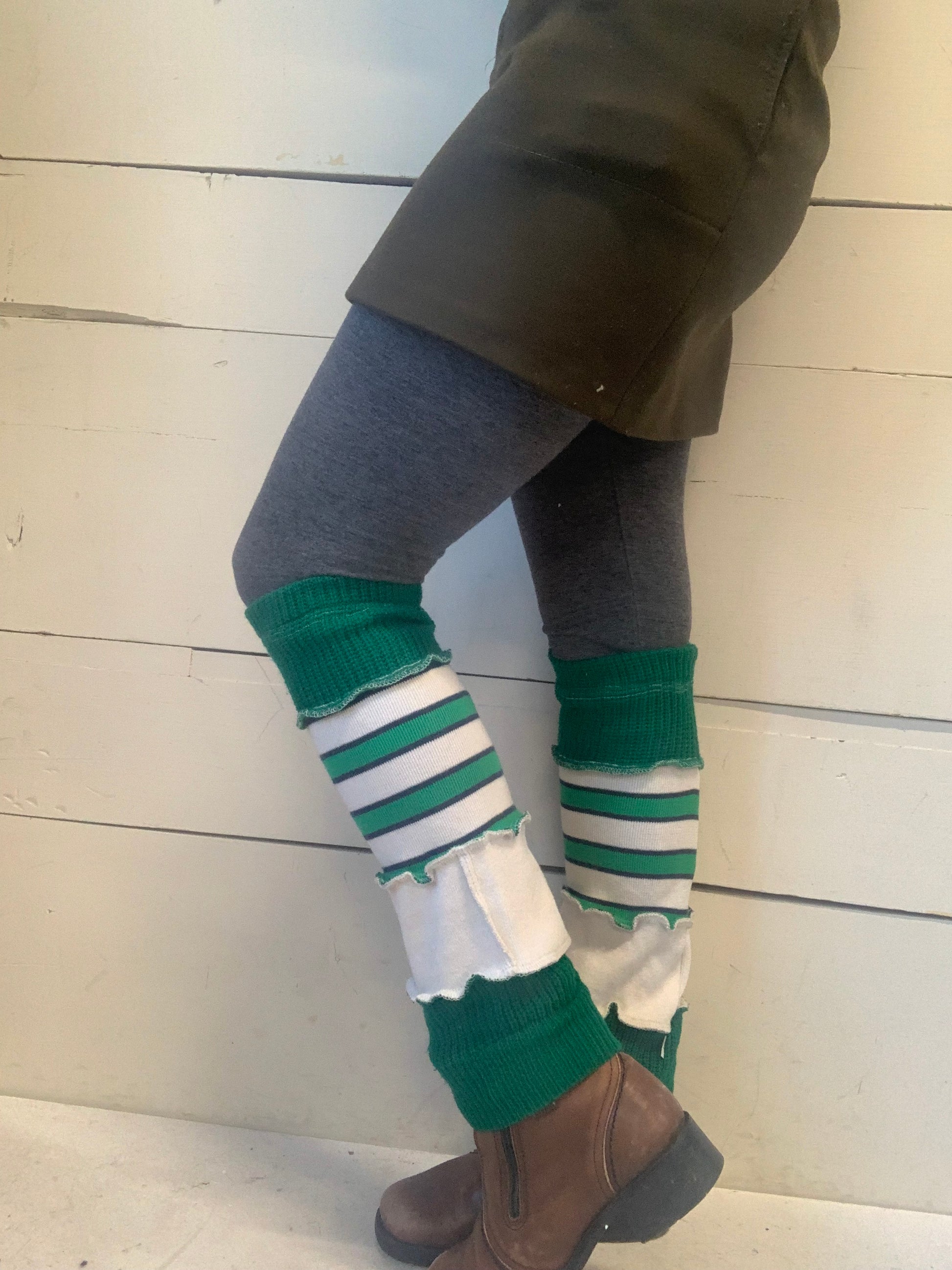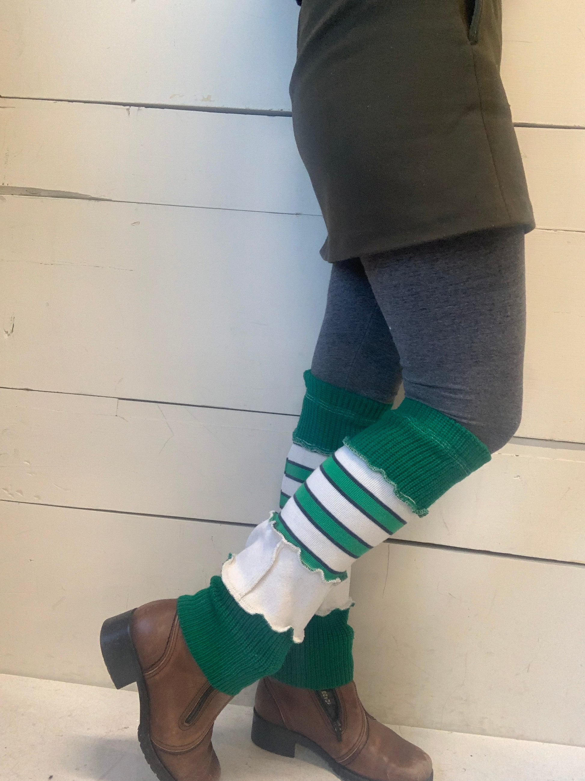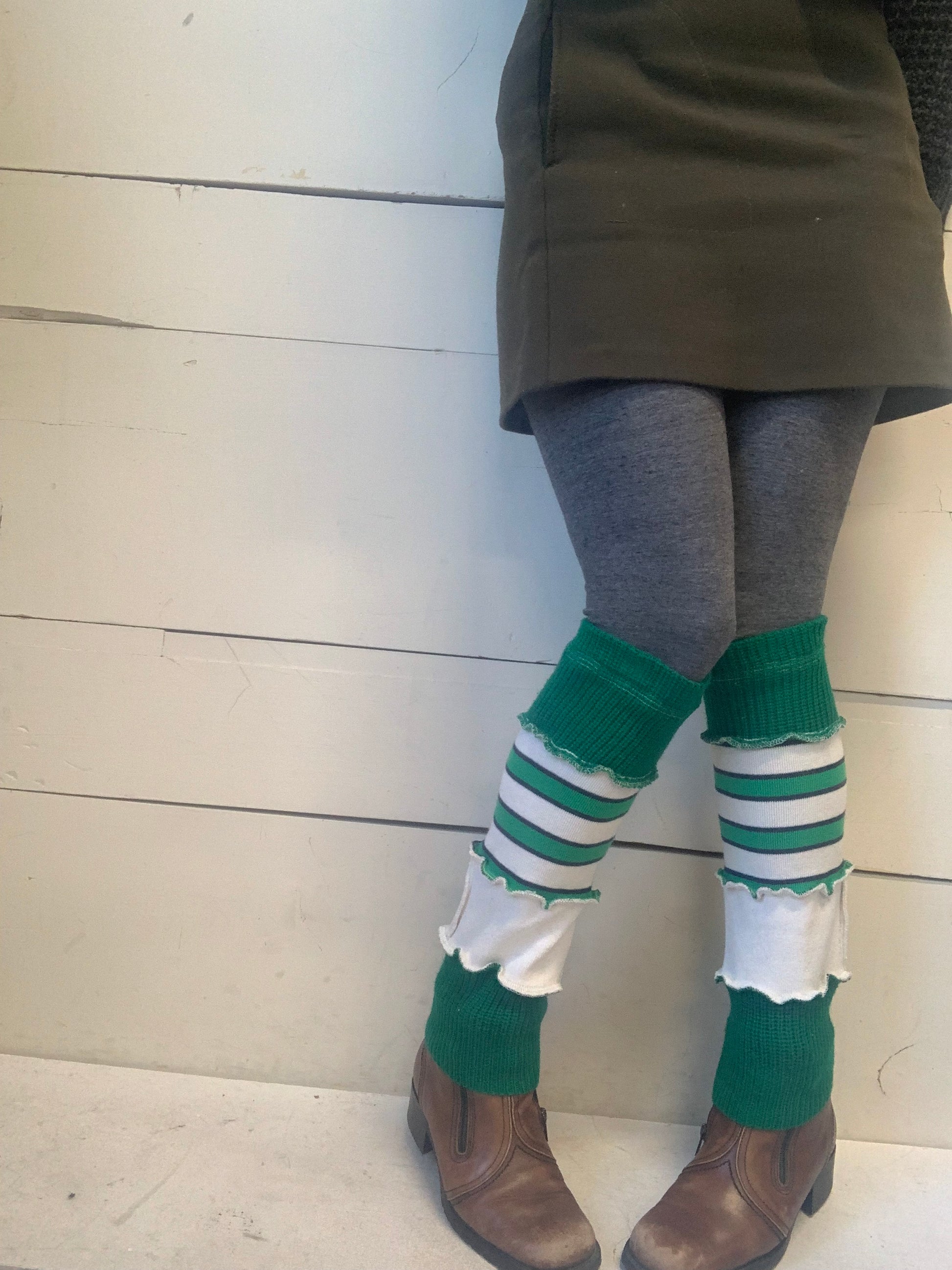 Jambières courte qui couvrent de la cheville au dessous du genou pour un adulte et qui couvrent de la cheville à la mi-cuisse pour un enfant de 9 ans.