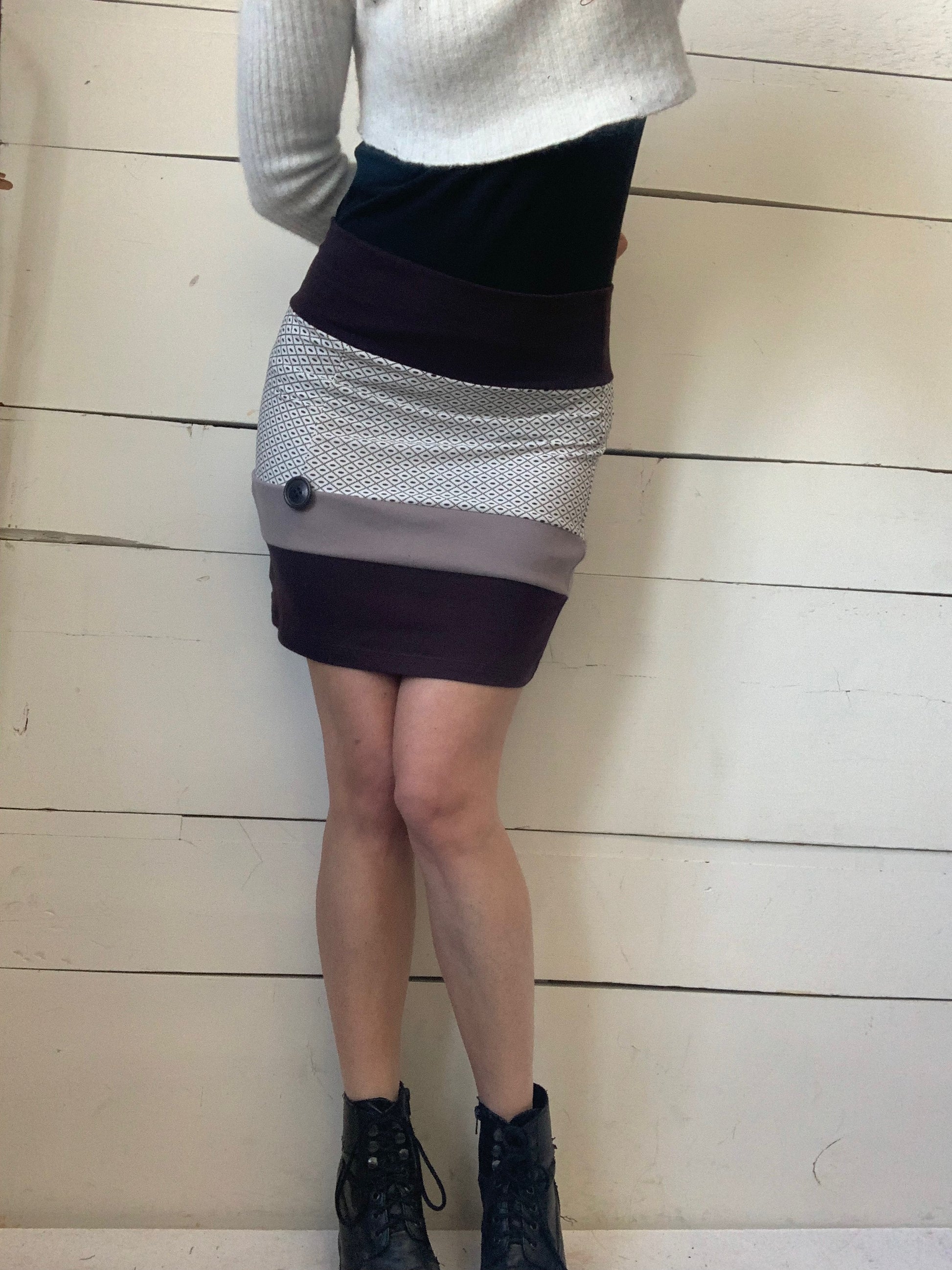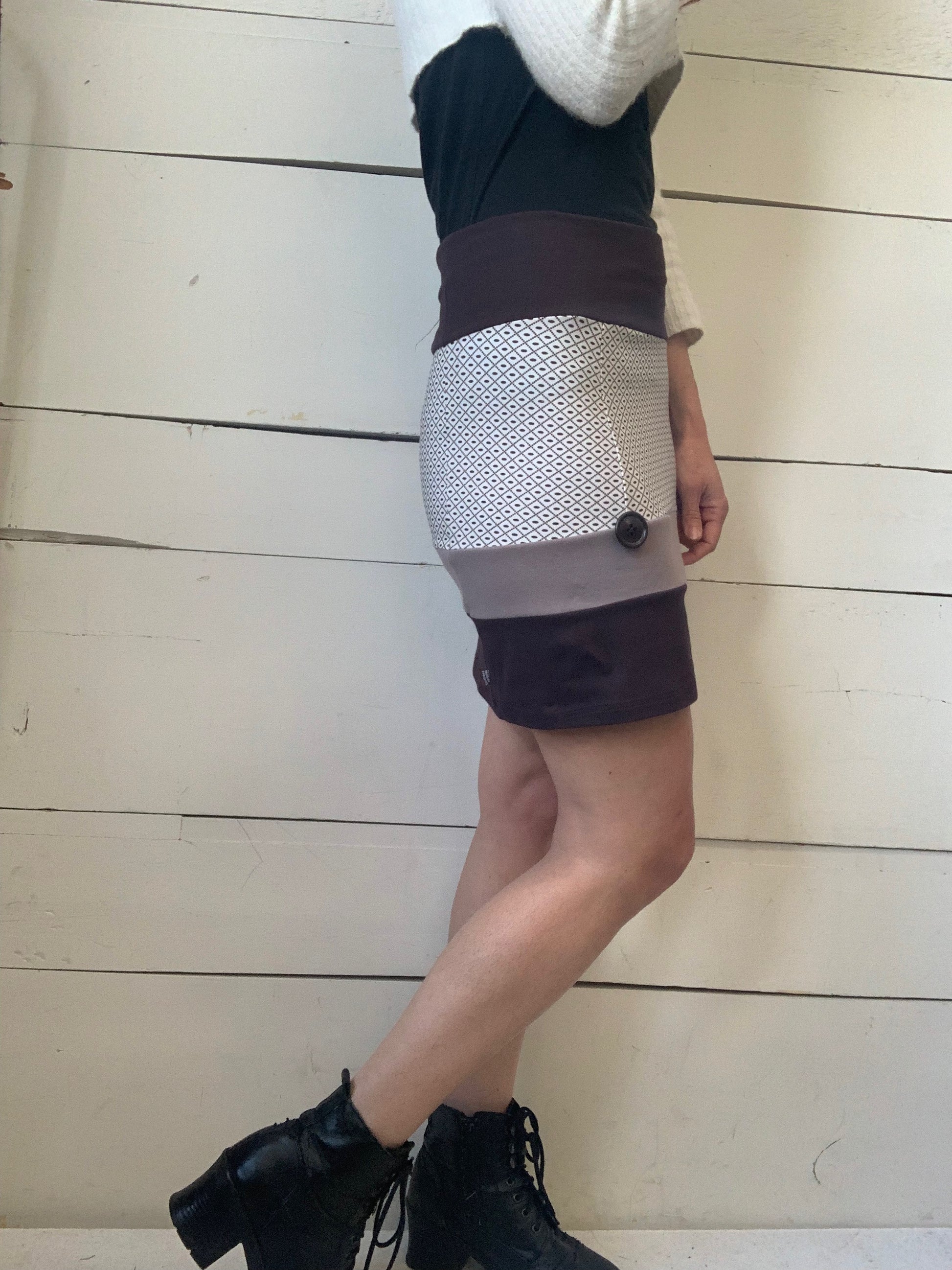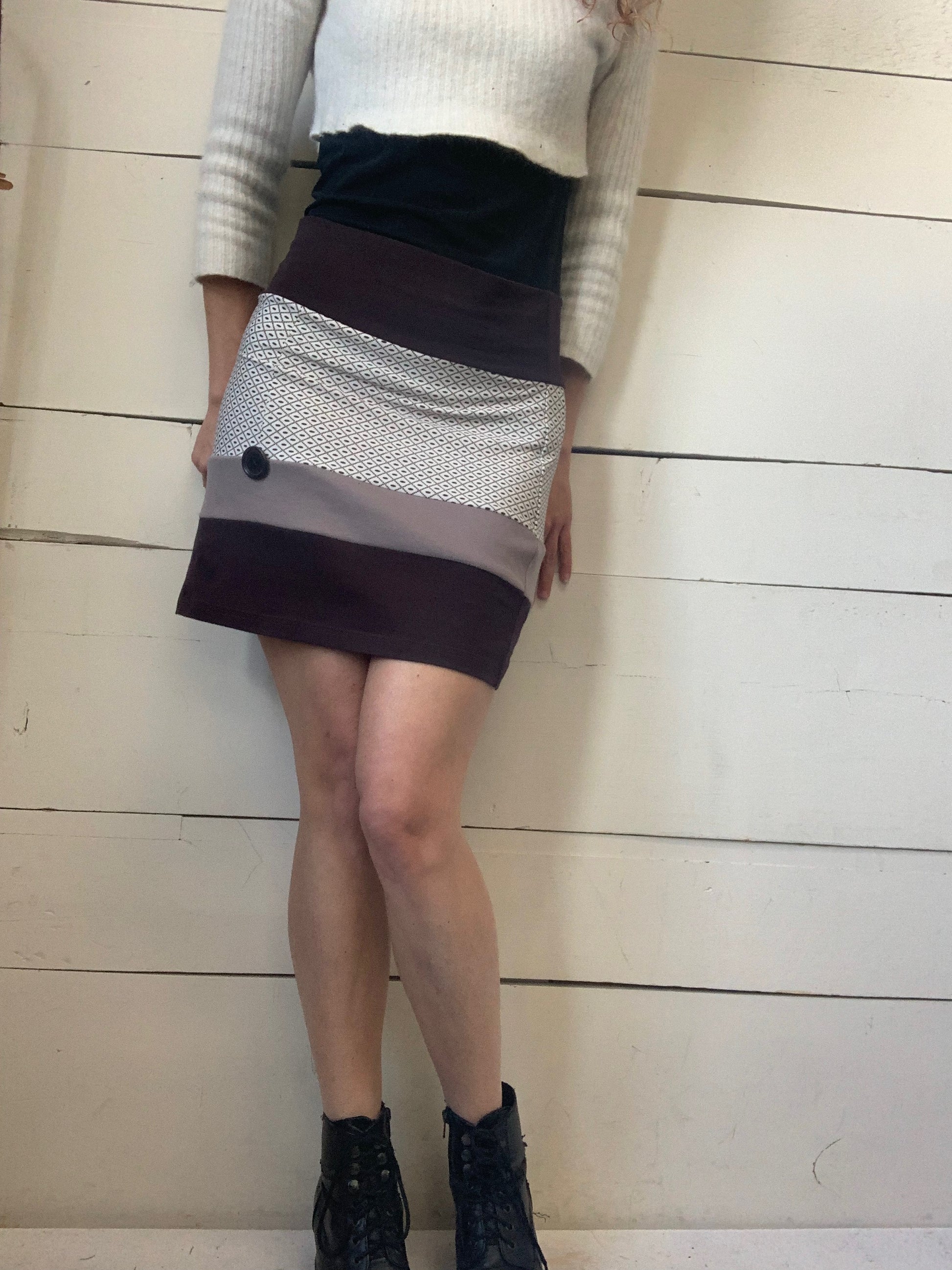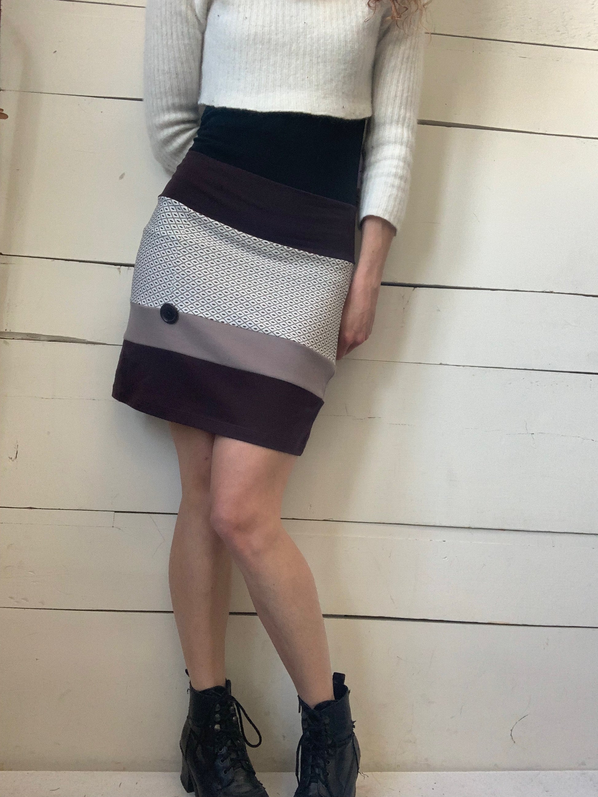 JUPE CRÈME ET BRUNE AVEC BOUTON (M)