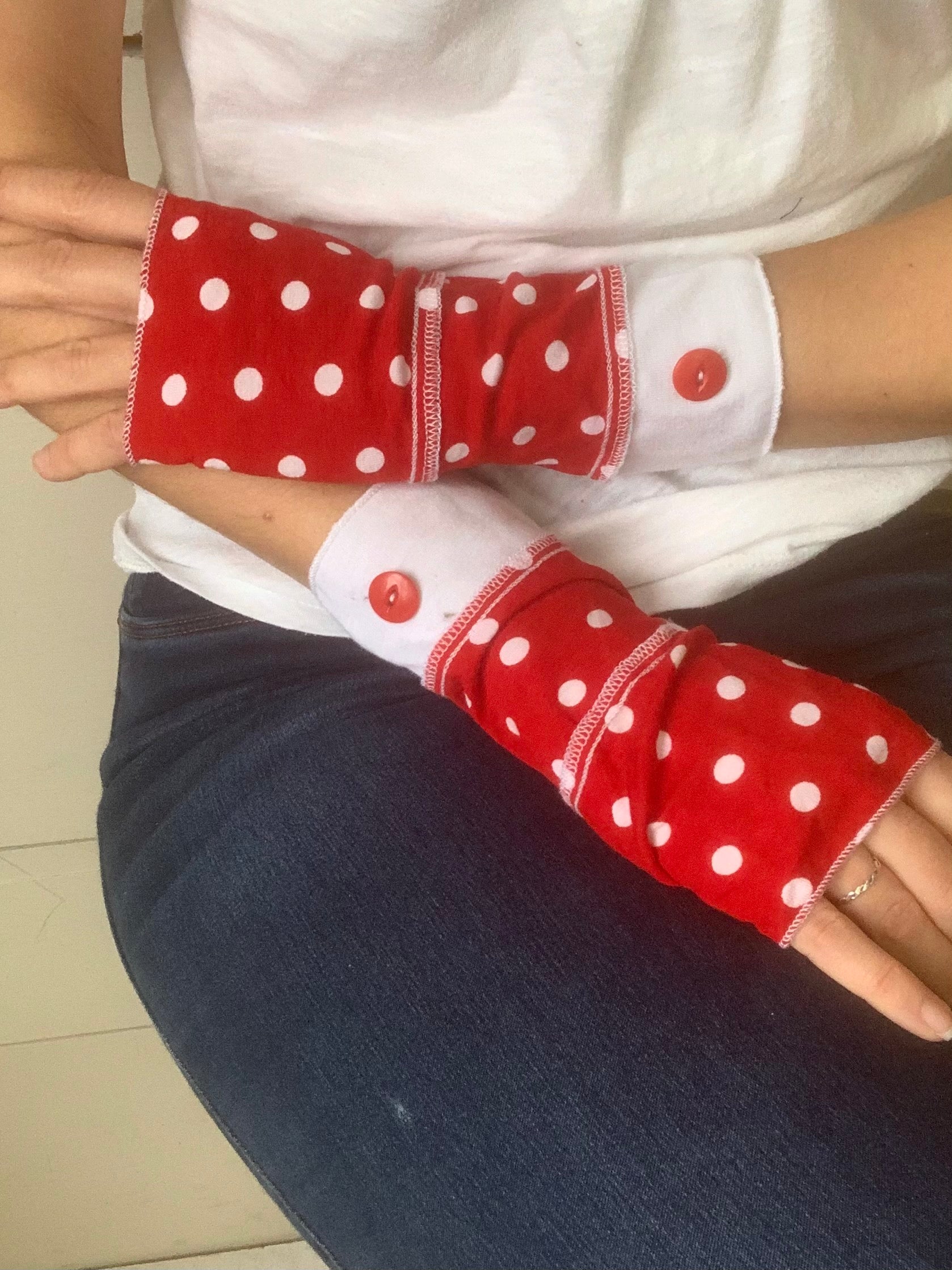 Poignet plus léger Rouge à picot blanc 😍