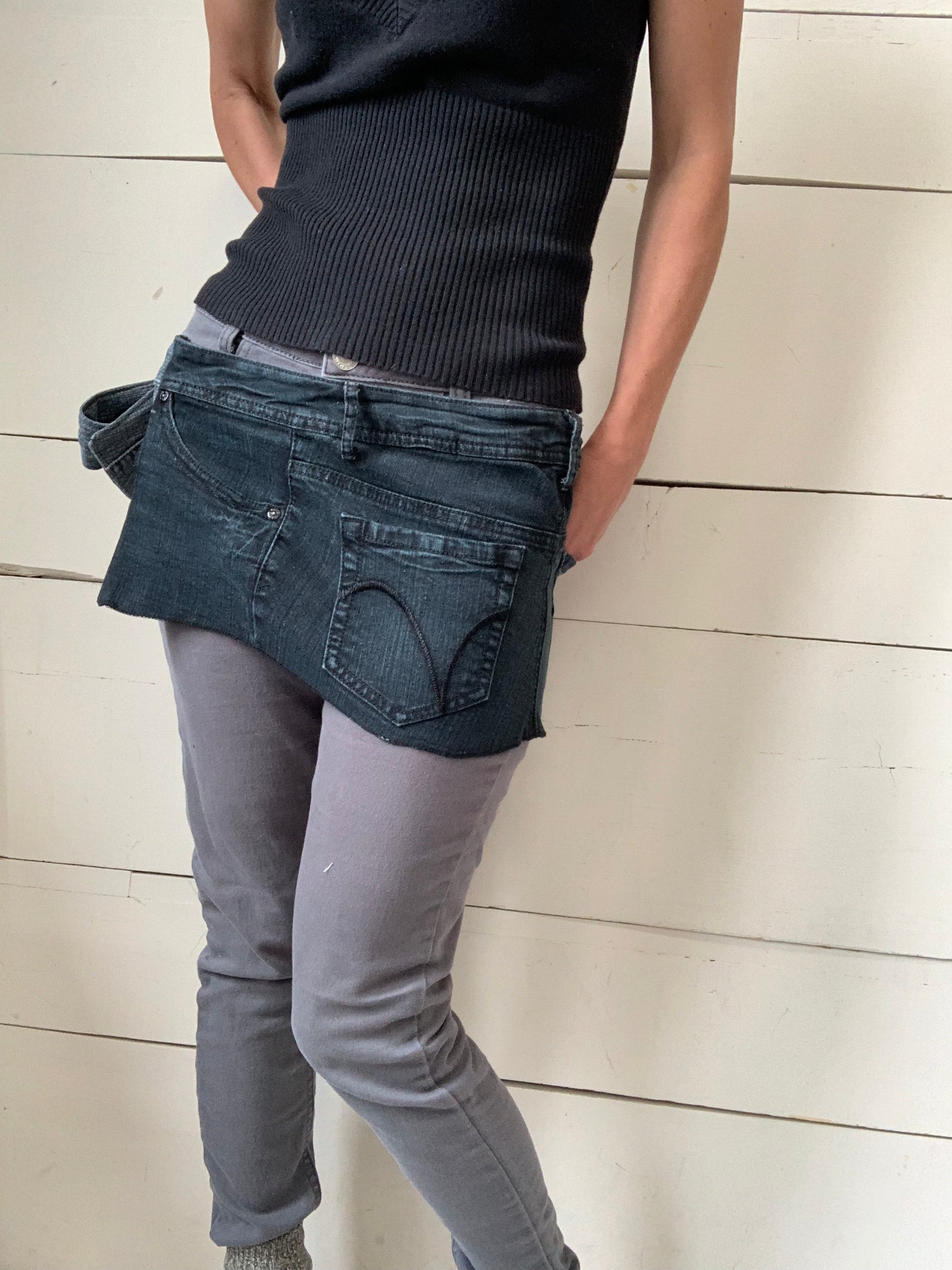 TABLIER JEANS NOIR DÉLAVÉ